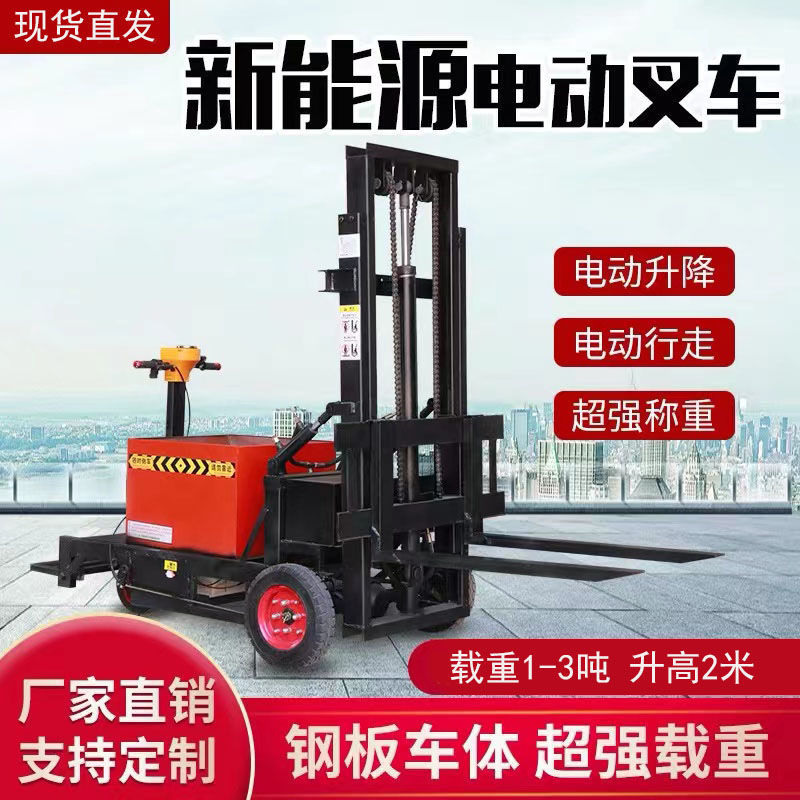 花莲市小型电动叉车1吨站驾式2吨液压升高铲车全自动仓储堆高车